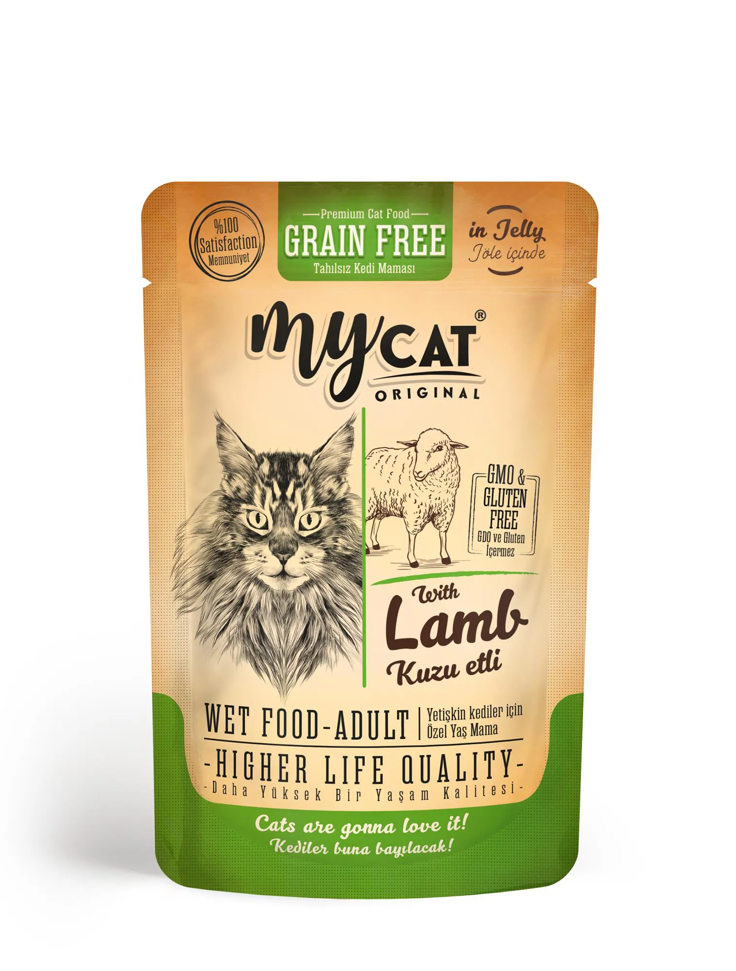 -ÜRÜN ÖZELLİKLERİ- JÖLE İÇİNDE KUZU ETLİ TAM BESLEYİCİ ISLAK MAMA İCINDEKILER: Et ve hayvansal ürünler (en az '%4 Kuzu Eti), mineraller. Renklendirici ve koruyucu madde içermez ANALITIK BiLESENLER: Protein %9.0. Yağ %5.0. Kil % 2.0, Lif %0.1 , Nem % 82.0. BESINSEL TAKVIYELER: A Vitamini 2000 IU/kg , D3 Vitamini 2000 IU/kg, E Vitamini 20 IU/kg, B vitamini kompeksi 15.51 mg/kg, Çinko (Çinko Sülfat Monohidrat) 10 mg/kg Manganez (Manganez Sülfat) 5 mg/kg, Selenyum (Sodyum Selenit) 0.03 mg/kg. Taurin 500 mg/kg, Cassia Gum 4800 mg/kg BESLENME KILAVUZU: Önerilen günlük miktar beslenme tablosunda belirtilmiştir. Her zaman bir kase taze su verin ve oda sicaklığında servis edin. Açıldıktan sonra buzdolabında saklayın. KEDİ AĞIRLIĞI KG 2 4 6 8 GÜNLÜK PORSİYON GR 2 3 4 5