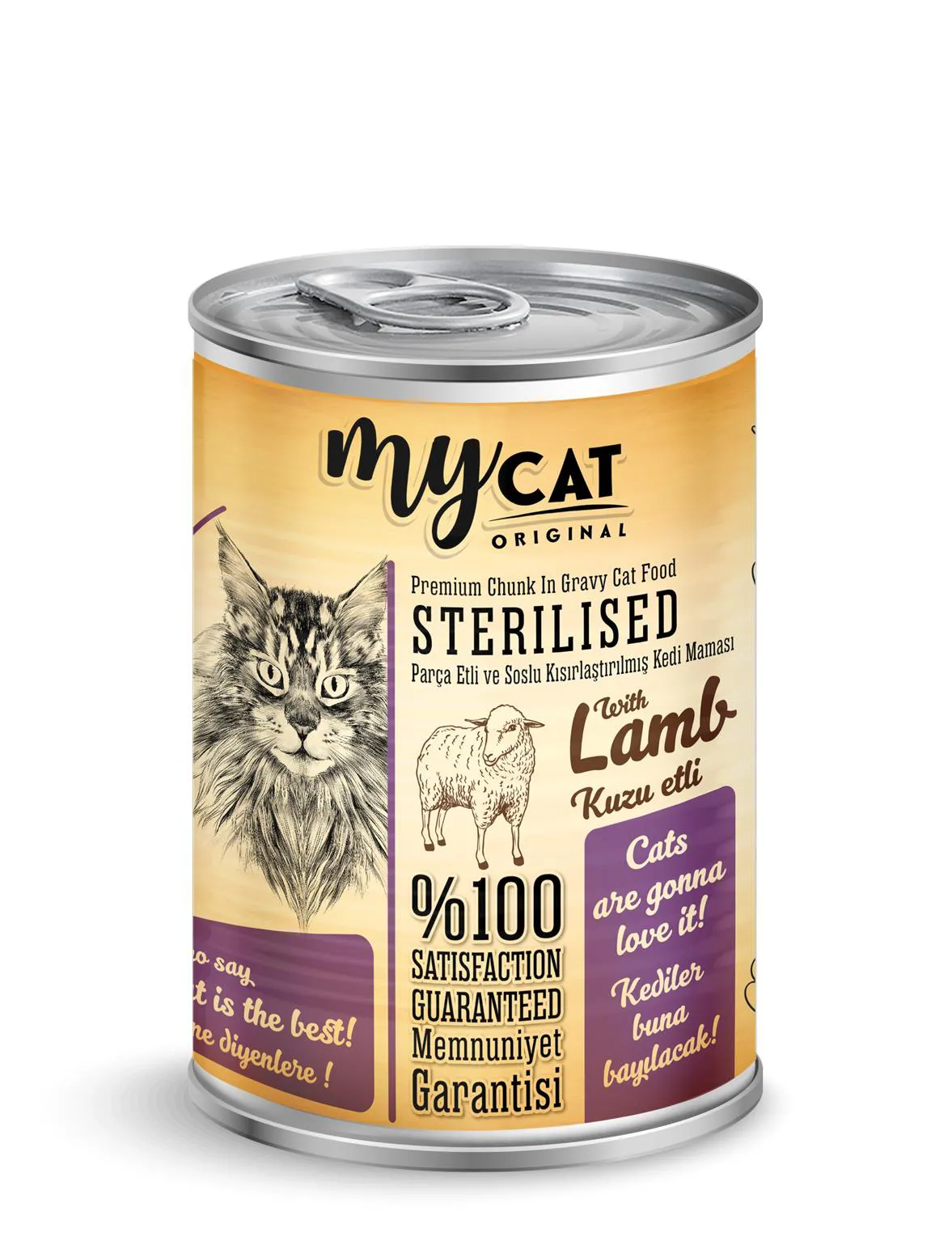 -ÜRÜN ÖZELLİKLERİ- KUZU PARÇA ETLİ ve SOSLU KISIRLAŞTIRILMIŞ KEDİ MAMASI 400gr. Kedilerin içgüdüsel beslenme alışkanlıklarına hitap eden ve beslenme sağlığını ön planda tutan, %100 MEMNUNİYET GARANTİLİ ÖZEL İÇERİK Dostunuz için Vazgeçilmez Olacak! İçindekiler: Et ve et Ürünleri (Kuzu eti min. %4), Bitkisel ürünler, Mineraller ve Vitamin Katkıları. BESİNSEL TAKVİYELER: Vitamin A 1000 i.u/Kg, Vitamin D3 100 i.u/Kg, Vitamin E 13 i.u./Kg, L-carnitine 0,08/kg Taurin 250 mg. Amonyum klorür 2 gr/kg, dl-metionine 0,3 gr/kg ANALİTİK BİLEŞENLER/ Protein %6. Fat/Yağ %4 Ash/Kül %3 Fibre/Selüloz %0.4 Moisture/Nem %84 Domuz eti ve türevleri içermez: TATLANDIRICI ve KORUYUCU MADDE İÇERMEZ.