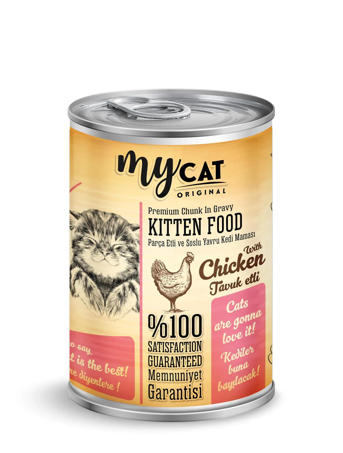 -ÜRÜN ÖZELLİKLERİ- TAVUK PARÇA ETLİ ve SOSLU YAVRU KEDİ MAMASI 400gr. Kedilerin içgüdüsel beslenme alışkanlıklarına hitap eden ve beslenme sağlığını ön planda tutan, %100 MEMNUNİYET GARANTİLİ ÖZEL İÇERİK Dostunuz için Vazgeçilmez Olacak! İçindekiler: Et ve et Ürünleri (Tavuk eti min. %4), Bitkisel ürünler, Mineraller ve Vitamin Katkıları. BESİNSEL TAKVİYELER: Vitamin A 1000 i.u/Kg, Vitamin D3 100 i.u/Kg, Vitamin E 13 i.u./Kg Taurin 250 mg. ANALİTİK BİLEŞENLER/ Protein %8,5. Fat/Yağ %4 Ash/Kül %3 Fibre/Selüloz %0.4 Moisture/Nem %82 Domuz eti ve türevleri içermez: TATLANDIRICI ve KORUYUCU MADDE İÇERMEZ.