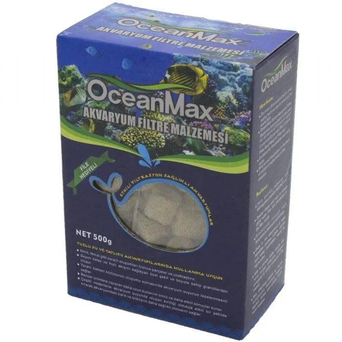 Ürün Özellikleri Akvaryumda NO2(nitrit) ve NO3(nitrat) oluşumunu dengeler. Filtre içerisinde su akışını önlemeyecek özel tasarım ile üretilmiştir. Yüksek sıcakta arıtma teknoloji işlemi. Faydalı bakterilerin üremesini sağlar. Bakterilerin üremesinden sonra suyun parametrelerinde düzenleme sağlar. Benzer ürünlere kıyasla daha uzun ömürlüdür. Akvaryum suyunda saf olmayan maddeleri parçalara ayırır. Bu sebeple akvaryum balıklarını ve bitkilerini daha sağlıklı hale getirir. Kullanmadan önce ürününüzü mutlaka temiz su ile çalkalayınız. Böylece olası tozlanmayı uzaklaştırmış olursunuz. Oceanmax filtre malzemeleri tüm filtre çeşitlerine uygundur. (iç-dış-tepe-kutu-askı vs.) Hem tatlı su, hemde tuzlu su akvaryumlarında kullanılabilirler. En iyi sonuç için filtre malzemelerinizi suyun fitreye giriş yaptığı bölümde kullanmanızı öneririz. Akvaryum litresine göre ortalama kullanım miktarı; 50-80 Litre akvaryumlarda 500Gram 120-150 Litre akvaryumlarda 1000Gram 180-280 Litre akvaryumlarda 1500Gram 300-500 Litre akvaryumlarda 2500Gram