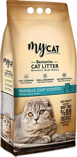 Mycat Bentonit Kedi Kumu Marsilya Sabun Kokulu (Kalın Tane) 10 LT