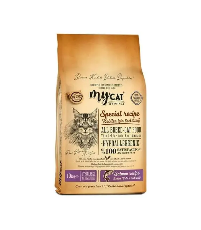 -ÜRÜN ÖZELLİKLERİ- MyCat Original Az Tahıllı Somon Balıklı Diyet & Kısır Kedi Maması 10kg AZ TAHILLI SOMON BALIKLI TÜM IRK KEDİLERE DAHA YÜKSEK YAŞAM KALİTESİ SAĞLAMAK İÇİN TASARLANMIŞTIR. HYPOALLERGENICTİR ( HASSAS ALERJİYE SAHİP KEDİLER KULLANABİLİR) KİLOLU VEYA KISIR TÜM IRK KEDİLER KULLANABİLİR KİLO KONTROLÜ SAĞLAR. PROTEİN %30 FAT / YAĞ %12 %100 MEMNUNİYET (PREMİUM İÇERİĞİ İLE YÜKSEK YAŞAM KALİTESİ SUNAR) KEDİ AĞIRLIĞI KG 1,5-2,5KG 2,5-4,5KG 4,5-6,5KG 6,5-8,5KG GÜNLÜK PORSİYON GR 20-30 30-50 50-70 70-90 Somon balıklı özel tarif, kısır kedilere daha yüksek bir yaşam kalitesi sağlamak için tasarlanmıştır. İçeriğinde kedilerin ihtiyaç duyduğu tüm besinsel bileşenleri aynı tarifte toplamayı hedefleyerek, 'Bütünsel Etkili Besin' kavramını oluşturduk. Doğru beslenme ile birlikte mükemmel bir lezzet deneyimi sunmak için en üst sınıf hammaddeleri kullandık. Yüksek protein ve düşük yağlı içeriği ile kısırlaştırılmış kedilerin kilo kontrolünü sağlayarak, sağlıklı ve dengeli bir beslenme deneyimi sunar. İçindekiler: İşlenmiş Somon Proteini, Pirinç, Mısır Glüteni, Mısır, Tavuk Yağı, Hidrolize Tavuk, Ciğeri, İşlenmiş Balık Proteini, Bira Mayası, Hamsi Yağı, Nükleotit Maya Proteini, Prebiyotik Mannan Oligo Sakkaritler, Tuz, Mineraller, Deniz Yosunu, Avizeağacı Özütü, Kızılcık Tozu, Pisilyum. Besleyici İlaveler: Vitamin A (3a672a), Vitamin D3 (3a671), Vitamin E Nutritional, (3a700), Vitamin C (3a300), Taurine (3a370), Vitamin B1 (3a821), Vitamin B2 (3a825i), Vitamin B3 (3a315 Niacin), Vitamin B6 (3a831), Vitamin B12 (3a835), Vitamin B7 (3a880 Biotin), Vitamin B9 (3a316 Folic acid), Vitamin K3 (3a710), Calcium D-Pantothenate (3a841), Calcium (11.1.1), Phosphorus (11.3. 1), Zinc (3b603), Omega 6 %3,6, Copper (3b405), Iron (3b103), Sodium (11.4.2), Organic Selenium (3b801), Iodine (3b202), Omega 3 %0,65, L-Karnitin (3b801). Analitik Bileşenler Ham Protein..........%30 Yağ.......................%12 Ham Kül...............%7 Ham Selüloz........%3 Besleyici İlavaler Vitamin A ............25000IU/kg Vitamin D3..........1800IU/kg Vitamin E............500mg/kg Vitamin C...........30mg/kg Taurin.................2200mg/kg Yeni Mamaya Geçiş Süreci Evcil hayvanların sindirim sisteminin sağlıklı şekilde uyum sağlayabilmesi için, mama değişimi kademeli olarak yapılmalıdır. Ani geçişler mide ve bağırsak problemlerine yol açabilir. Yeni mamaya geçiş süreci, 7-10 gün boyunca eski ve yeni mamanın karıştırılarak verilmesiyle tamamlanmalıdır. Bu süreçte ev yemeği eklenmemeli, sadece kuru mama kullanılmalıdır. Mama seçiciliği olan hayvanlar için, yeni mama elde sunularak alışma süreci desteklenebilir. Geçiş boyunca hayvanın dışkı yapısı, enerji seviyesi ve genel durumu gözlemlenmeli; herhangi bir olumsuz durumda veteriner hekime danışılmalıdır. Geçiş Planı: 1–3. Gün: %25 yeni mama, %eski 75 eski mama 4–6. Gün: %50 yeni mama, %50 mama 7–9. Gün: %75 yeni mama, %25 eski mama 10. Gün ve sonrası: %100 yeni mama