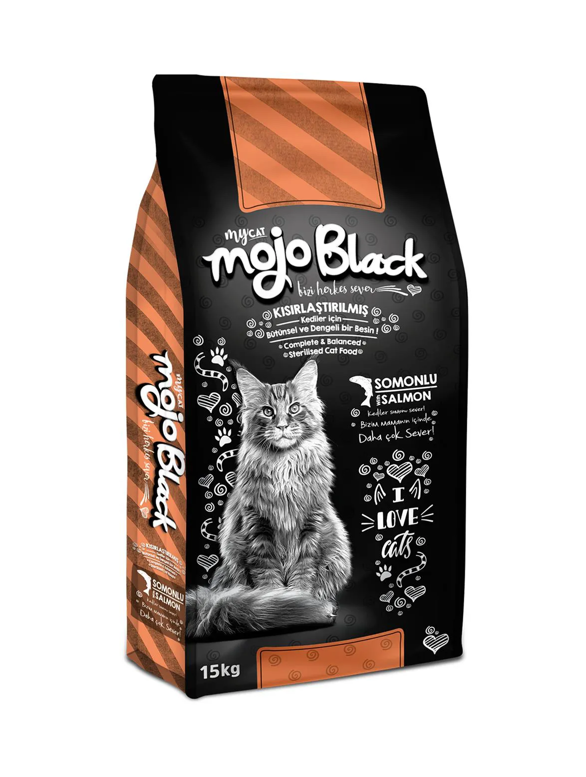 -ÜRÜN ÖZELLİKLERİ- Mojo Black Sterilised Somon Balıklı Kısır Kedi Maması 15kg İçinde Neler Var Neler :) PROTEİN %26 FAT / YAĞ %9 %100 MEMNUNİYET (PREMİUM İÇERİĞİ İLE YÜKSEK YAŞAM KALİTESİ SUNAR) KEDİ AĞIRLIĞI KG 1-2 2-3 3-4 4-5 5-6 7-8 GÜNLÜK PORSİYON GR 25-35 35-55 55-75 75-90 90-110 110-130 Yetişkin Kediler İçin Tam ve Dengeli Balıklı Kedi Maması İçindekiler: Kurutulmuş Balık Proteini (%25), Buğday, Mısır, Buğday Kepeği, Hayvansal yağ,, Bonkalit, Pirinç, Mısır Gluteni, Kurutulmuş Şeker Pancarı, Ciğer Aroması, Tuz, Keten Tohumu, Kurutulmuş Bira Mayası, Taurin (3a370), Koruyucular ve Antioksidanlar (E320-E321). Besleyici İlaveler /Nutritional Supplements: Vitamin A (3a672a), Vitamin D3 (3a671),Vitamin E (3a700),Vitamin C (3a300), Vitamin B1 (3a821), B2 (3a825i), B3 (Niasin-3a315), B6 (3a831), B12 (3A), B7 (Biotin-3a880), B9 (Folik Asit-3a316), Vitamin K3 (3a710), Kalsiyum Pantotenat 3a841. Mineraller: Demir (3b103), İyot (3b202), Bakır(3b405), Manganez (3b502), Çinko (3b603), Selenyum (3b802). Minerals: Iron (3b103), Lodine (3b202), Copper (3b405), Manganese (3b502), Zinc (3b603), Selenium (3b802), Besin Değerleri Ham Protein %26 Yağ %9 Ham kül %8 Ham Selüloz %2,5 Besleyici İlaveler Vitamin A %15000 IU/kg Vitamin D3 %1000 IU/kg Vitamin E %150 mg/kg Vitamin C %120 mg/kg Taurin %1000 mg/kg