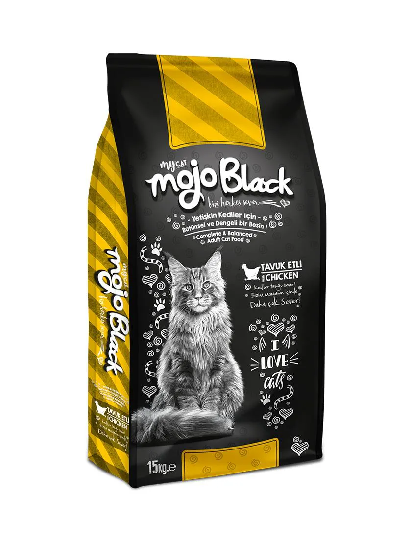 -ÜRÜN ÖZELLİKLERİ- Mojo Black Tavuklu Kedi Maması 15kg İçinde Neler Var Neler :) PROTEİN %26 FAT / YAĞ %9 %100 MEMNUNİYET (PREMİUM İÇERİĞİ İLE YÜKSEK YAŞAM KALİTESİ SUNAR) KEDİ AĞIRLIĞI KG 1-2 2-3 3-4 4-5 5-6 7-8 GÜNLÜK PORSİYON GR 25-35 35-55 55-75 75-90 90-110 110-130 Yetişkin Kediler İçin Tam ve Dengeli Tavuklu Kedi Maması İçindekiler: İşlenmiş Tavuk Proteini (%25), Buğday, Mısır, Buğday Kepeği, Hayvansal yağ,, Bonkalit, Pirinç, Mısır Gluteni, Kurutulmuş Şeker Pancarı, Ciğer Aroması, Tuz, Keten Tohumu, Kurutulmuş Bira Mayası, Taurin (3a370), Koruyucular ve Antioksidanlar (E320-E321). Besleyici İlaveler /Nutritional Supplements: Vitamin A (3a672a), Vitamin D3 (3a671),Vitamin E (3a700),Vitamin C (3a300), Vitamin B1 (3a821), B2 (3a825i), B3 (Niasin-3a315), B6 (3a831), B12 (3A), B7 (Biotin-3a880), B9 (Folik Asit-3a316), Vitamin K3 (3a710), Kalsiyum Pantotenat 3a841. Mineraller: Demir (3b103), İyot (3b202), Bakır(3b405), Manganez (3b502), Çinko (3b603), Selenyum (3b802). Minerals: Iron (3b103), Lodine (3b202), Copper (3b405), Manganese (3b502), Zinc (3b603), Selenium (3b802), Besin Değerleri Ham Protein %26 Yağ %9 Ham kül %8 Ham Selüloz %2,5 Besleyici İlaveler Vitamin A %15000 IU/kg Vitamin D3 %1000 IU/kg Vitamin E %150 mg/kg Vitamin C %120 mg/kg Taurin %1000 mg/kg