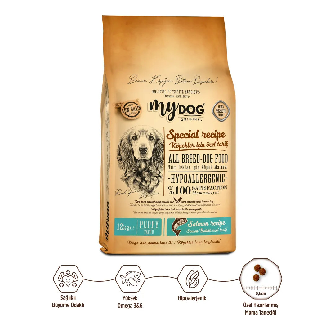 -ÜRÜN ÖZELLİKLERİ- MyDog Original Az Tahıllı Somon Balıklı Yavru Köpek Maması 12kg AZ TAHILLI SOMON BALIKLI YAVRU KÖPEKLERE DAHA YÜKSEK YAŞAM KALİTESİ SAĞLAMAK İÇİN TASARLANMIŞTIR. HYPOALLERGENICTİR ( HASSAS ALERJİYE SAHİP KÖPEKLER KULLANABİLİR) PROTEİN % 28 FAT/YAĞ % 16 %100 MEMNUNİYET (PREMİUM İÇERİĞİ İLE YÜKSEK YAŞAM KALİTESİ SUNAR) KÖPEK AĞIRLIĞI KG 1-2 3-4 5-6 7-8 GÜNLÜK PORSİYON GR 30-45 60-80 100-120 140-160 Somon Balıklı Özel Tarif: Yavru Köpeklere Daha Yüksek Bir Yaşam Kalitesi Sağlamak İçin Tasarlanmıştır. İçindekiler: Kurutulmuş Somon ve Taze Balık (%45), (Kurutulmuş %35, Taze %10) Esmer Pirinç, Bezelye, Patates, Tavuk Yağı, Bira Mayası, Balık Yağı, Kurutulmuş Şeker Pancarı, Kızılcık, Havuç, Probiyotikler, Keten Tohumu, Yaban Mersini, Balkabağı, Harnup, Yucca, Nükleotit Maya Proteini, Vitamin ve Mineraller. Besleyici İlaveler: Vitamin A (3a672a), Vitamin D3 (3a671), Vitamin E (3a700), Vitamin C (3a300), Taurine (3a370), Vitamin B1 (3a821), Vitamin B2 (3a825i), Vitamin B3 (3a315 Niacin), Vitamin B6 (3a831), Vitamin B12 (3a835), Vitamin B7 (3a880 Biotin), Vitamin B9 (3a316 Folic acid), Vitamin K3 (3a710), Calcium D-Pantothenate (3a841), Calcium (11.1), Phosphorus (11.3.1), Zinc (3b603), Copper (3b405), İron (3b103), Sodium (11.4.2), Organic Selenium (3b801), Lodine (3b202), Glukozamin 1200 mg/kg, Kontroitin 800 mg/kg, Omega 6 %3.7, Omega 3 %0.75, Yeni Mamaya Geçiş Süreci Evcil hayvanların sindirim sisteminin sağlıklı şekilde uyum sağlayabilmesi için, mama değişimi kademeli olarak yapılmalıdır. Ani geçişler mide ve bağırsak problemlerine yol açabilir. Yeni mamaya geçiş süreci, 7-10 gün boyunca eski ve yeni mamanın karıştırılarak verilmesiyle tamamlanmalıdır. Bu süreçte ev yemeği eklenmemeli, sadece kuru mama kullanılmalıdır. Mama seçiciliği olan hayvanlar için, yeni mama elde sunularak alışma süreci desteklenebilir. Geçiş boyunca hayvanın dışkı yapısı, enerji seviyesi ve genel durumu gözlemlenmeli; herhangi bir olumsuz durumda veteriner hekime danışılmalıdır. Geçiş Planı: 1–3. Gün: %25 yeni mama, %eski 75 eski mama 4–6. Gün: %50 yeni mama, %50 mama 7–9. Gün: %75 yeni mama, %25 eski mama 10. Gün ve sonrası: %100 yeni mama